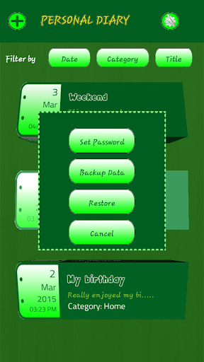 備份你的日記數據到存儲卡,並使用單一的點擊還原功能將其還原到你的日記任何時間