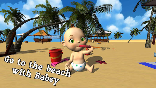 符合Babsy會說話的嬰兒在沙灘上。與她交談,她會重複你說的一切,並為你的觸摸做出反應。花了很大的時間與Babsy和她的有趣的活動。給Babsy冰淇淋,或使她與球發揮使她振作起來。喜歡打扮她了不同的泳衣,記得給她一些水果吃,如果她是餓了。