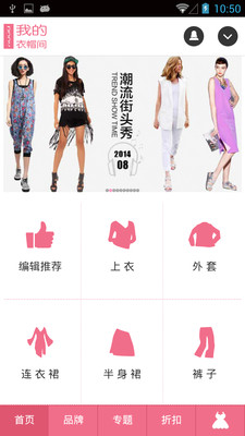 衣橱:贴心的私物管家,女生的掌上衣柜;支持将个人衣服拍摄保存至客户端,实现掌上分类管理;支持在线服装保存至本地;支持将自己的服饰与线上服饰进行自由搭配,对比效果。