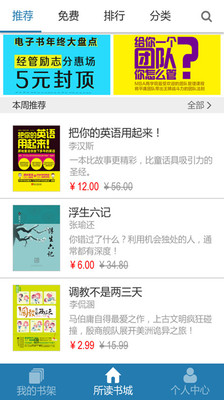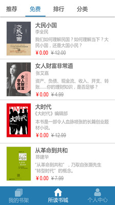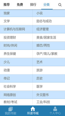 所读图书移动客户端是以电子书为信息载体实现在线购买、阅读电子书的移动平台。用户可以选择自己感兴趣的书籍进行试读,购买。同时还有海量免费书籍供阅读。