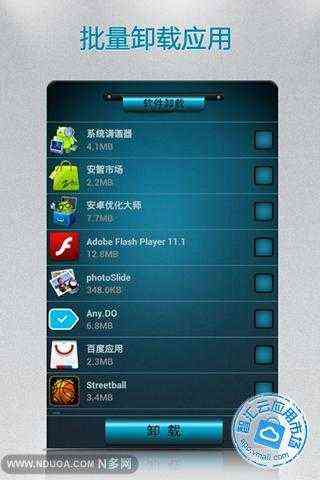 软件快速卸载:最直观的查看手机中已装程序,一键快速卸载节省用户时间;