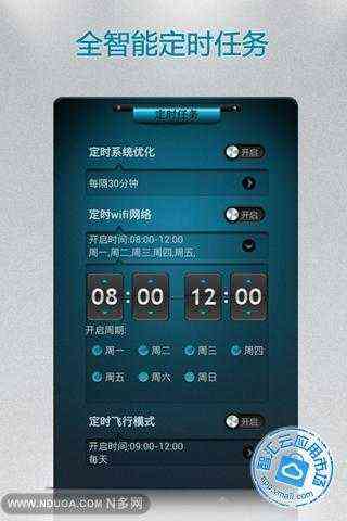 定时任务:全智能定时系统优化,定时WIFI、飞行模式开启时间,无需在手动操作;
