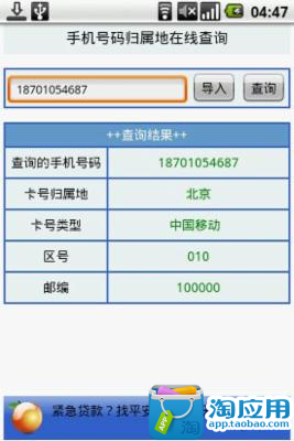 在线查询手机号码归属地,支持电信,联通,移动的3G号码查询。可以查询到运营商信息,归属地,卡类型,归属地邮编,区号等信息。