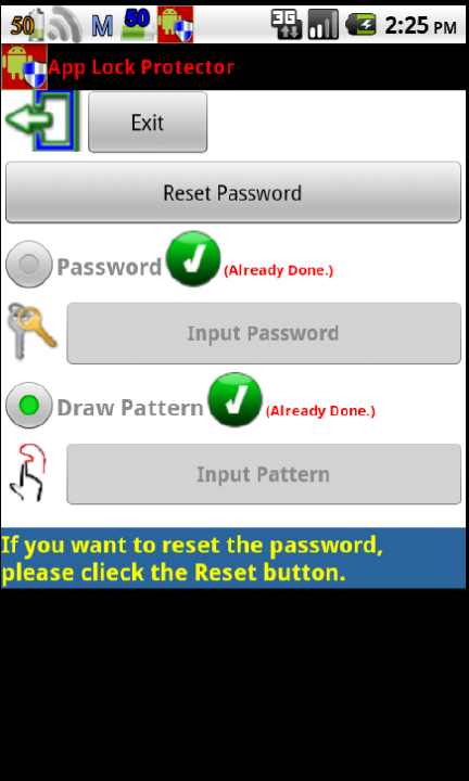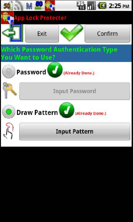1, Blocking any unauthorized APP access to protect your private data.2, Provide input password and draw pattern 2 type authentication type.3, Provide a security system service to guard the main protection APP.4, Avoid the unauthorized software install/uninstall and system property change.5, Light process and easy to use.App Lock Protector (Screen Locker) is not only to fulfill the requirements we need. It is really powerful and easy to use to enable the protection mechanism to secure your personal APP.For parents of children, we could block the APP to avoid inappropriate information for children. We known, there are many inappropriate information in the network for children, this software could also enable parent to set the protection to avoid the Thanks a lot for your usage. Welcome to give us your comment!!!.Orz