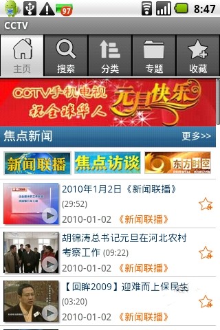 中国中央电视台,手机央视网,手机CCTV 中国网络电视台(英文简称CNTV),是中国国家网络电视播出机构.本软件是CCTV WAP版!