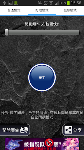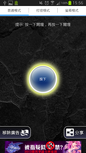 - 支持電話,平板,就算你的機器沒有閃光燈,仍可使用螢幕電筒