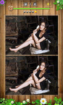 找妹不同处,每关设有几处找茬点,找出当前图片的所有茬就能顺利进入下一张图片,直到各关所有的图片找茬点都按时找到.