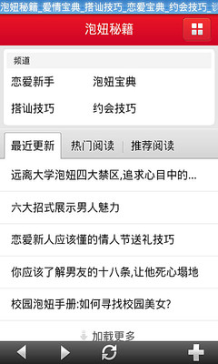 2.你还在为不知如何追女生而郁闷吗?她提供泡妞秘籍,爱情测试,恋爱交友,情感生活频道,让您早日抱得美人归;