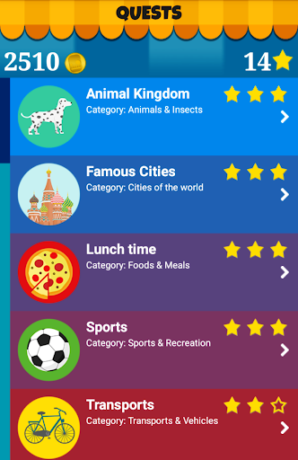 ★玩搜寻和类别游戏:动物、城市、食物、运动、交通工具、好莱坞、美味、饮料、树、音乐、国家、服装、漫画、人名、大自然、名胜古迹和更多!