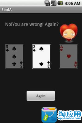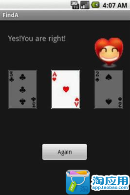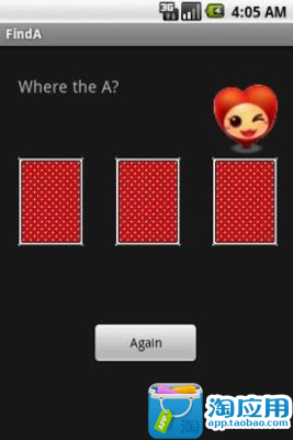 找出屏幕上三张牌中的红桃A,在玩时让你享受快乐生活,充满趣味的小游戏。