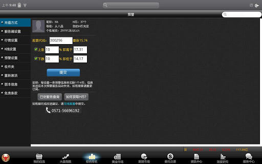 用户不方便用usb线连接电脑和手机进行下载的时候,可以直接登录wap网页进行下载;另外,wap端可以直接查看股票行情,K线和分时图.