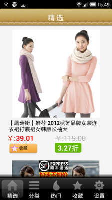 折上折:“有打折了?”“呀,我又错过了呢。”这样的声音妳是不是很熟悉?妳是不是刚好也错过了某个打折信息?从现在开始,只要有了折上折,不管妳在哪里,都可以看到最实惠的打折商品。