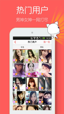 -热门用户:查看最受欢迎的男神、女神。