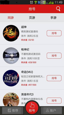 “抢号吧”是766游戏网为手机用户提供的一个领号平台,其中包括了网游、页游及手游的激活码或礼包,是个全面的免费的领号平台。