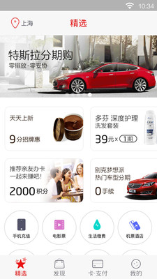 招牌美食、4折观影、积分抢兑、分期购物、金融分期……6大电商频道提供丰富商品