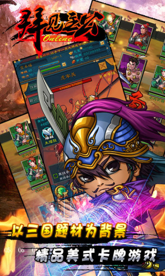 最火爆的卡牌策略游戏震撼上线!登录就有礼品,名将神兵送到爆!拜见主公是一款精心打造写实卡漫风格的策略类手机游戏,精美的游戏画面,突出个性的人物画风,高规格的名将赠送、超强大的战斗阵营、完美的武将装备升级系统,还有14项更加深入的名将战斗属性和技能等着你去升级!还原真实三国历史!奇遇探索系统,获得更多宝物资源!更有排位争夺系统,让您体验做主公那畅汗淋漓的快感!
