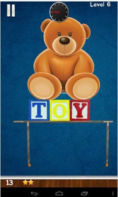 你还记得你的童年吗?当你玩你的玩具的时候?高兴,快乐,...铺散满地。这个时候你的母亲走进房间,并且对你说:“我希望全部归回原位??!如果我在地上发现任何玩具,就直接丢进垃圾桶!拯救玩具是一个与重力抗衡的技能游戏,你必须拯救所有的玩具。在每一个级别里你需要把所有的玩具进行整理排列使之不接触地面。