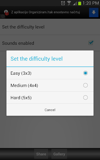 遊戲將開始與一個漂亮的令人振奮的背景音樂,但你可以把它隨時關閉,如果你想更好地集中自己。當你成功地完成一個級別,你會得到回報的完成的照片,你可以設置為您的智能手機或平板電腦上的高清背景或牆紙。