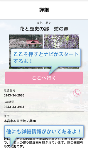 4.目的地の詳細情報(写真・電話番号・住所・施設の説明)が確認できます。
