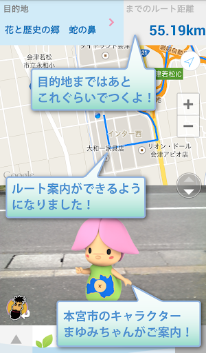 オリジナルキャラクターの”まゆみちゃん”が本宮市の観光スポットへご案内します。