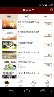 2、使用挥秘手机端应用登录挥秘个人云库,找到自己上传的PPT资源,并下载到手机。