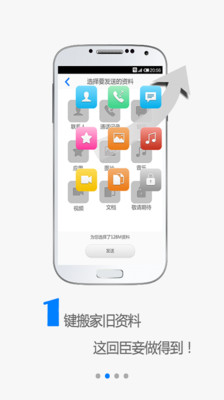 1.联系人、通话记录、短信、图片、音乐、视频、应用、文档等八类资料,一键转移。