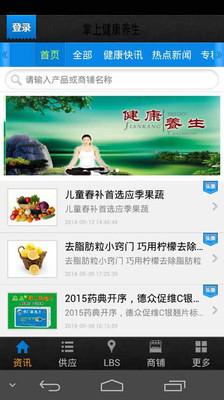 掌上健康养生客户端是一款实用性信息平台,集行业资讯、供求商机、企业黄页、微博分享、转播到腾讯微博、地图定位、一键拨打联系人电话等功能于一体,掌上健康养生客户端是以为企业和个人带来便捷为出发点;用户注册登陆就可以免费在线发布一定数量的供求信息,是健康养生行业人士上网找信息的首选平台。该客户端面向全国招商各大企业可在该客户端上发布供求信息、发布广告、让各大企业以及广大客户更为便捷。掌上健康养生客户端以其便捷的浏览方式、强大的应用功能,以及最新的资讯信息为广大客户展示一个丰富多样的信息平台。