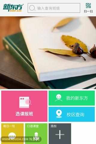 掌上新东方-新东方教育集团官方出品手机应用!在线搜索新东方课程,查询新东方各学校开课地点及时间,完成报名及付费,一切操作皆可在掌上新东方完成,足不出户就能享受新东方高效服务。全国48所新东方学校,涵盖从幼儿教学到出国留学教育,从周末班到国际游学夏令营,数十种课程,不同时段、不同特色的上千个班次,以及近万名有一手教学绝活的老师任您选择,为您量身打造最适合自己的培训课程。报名新东方,从此无需奔波!在掌上新东方还能干什么?在这里,你还能:掌上新东方——新东方课表查询、课程提醒、日程安排,高效学习...一切尽在掌握。背单词——掌上新东方我爱记单词,丰富的词库内容,多样的学习方式,让背单词不再乏味。口语课堂——最地道的发音,最全面的场景,最优秀的老师,口语水平飞跃从此不再是梦。段子工厂——新东方学员和老师们共同打造的段子工厂,内容包罗万象,学习之余放松心情。