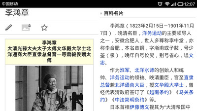 特色功能:历史上的今天,同屏对比维基百科、百度百科。