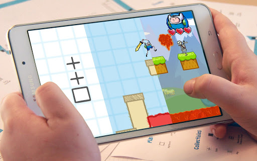 你可以先將遊戲畫在紙上,然後,再將它們掃描進去,或直接寫作數學層級方程式到應用程式裡! 將你的各層級關卡設計變成立即可玩的遊戲!**後置相機供掃描使用**