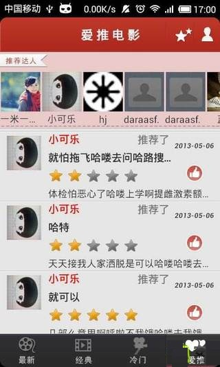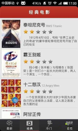 还在犹豫看什么电影么?就来试试推电影吧,它可以提供别人的评论和评分来帮你做决定;当然你也可以把你自己的喜欢的电影推荐给别人,让更多人关注这些影片,以影会友,我们都爱看电影~