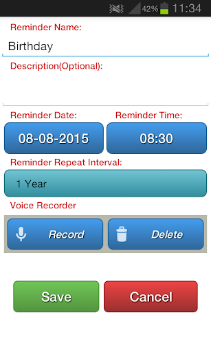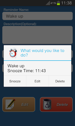 提醒一個簡單的和非常有用的程序。您可以輕鬆地創建一個提醒,提醒您的應用程序所需的日期和時間。您也可以注意到使用“設置”菜單中的聲音和振動設置。該應用程序是兼容幾乎所有的Android設備,但不支持讓我們知道,如果你認為,如果一個手機將支持迅速。