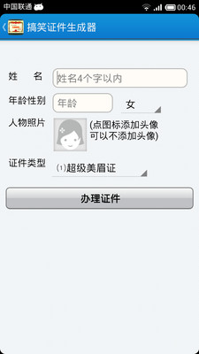 您只需要简单一点即可生成超级好玩的网络搞笑证件,并且您可以把生成的网络搞笑证件分享给好友,也可以保存到sd卡,也可以把网络搞笑证件做成论坛签名,非常方便。