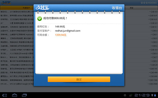 支付宝Andriod Pad客户端是支付宝针对Pad推出的客户端软件,只要在您的Pad上安装了支付宝Pad客户端,您随时随地随时随地缴水电煤气宽带费,手机话费充值、淘宝和其他商户订单支付、确认收货、给其他支付宝账户进行付款、账户充值、提现、查询功能、注册和更新,