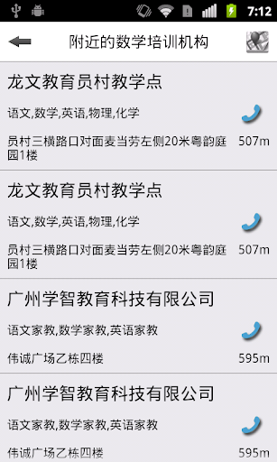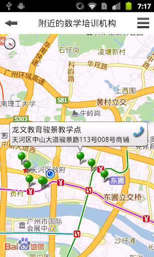 2、精准定位、快速查找周边教育培训机构电话及地图位置