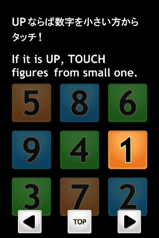 2.UPならば、表示された数字を小さい方から順番にタップします