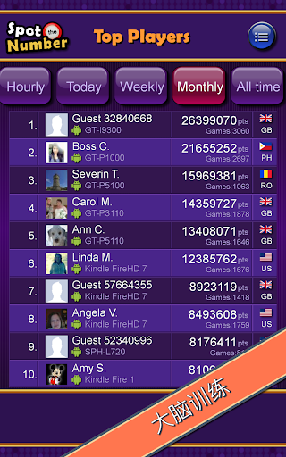 每位玩家将在同一时间进行同一游戏,在游戏结束后,您将了解自己在众多玩家中排名第几。
