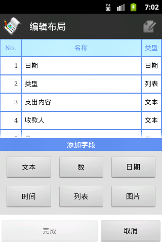 项的类型,是在文字,数字,日期,时间,图像,列表。