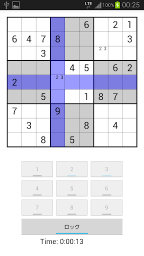 ・ゲーム中は マスを選択⇒数字を選択 で数字が入ります。