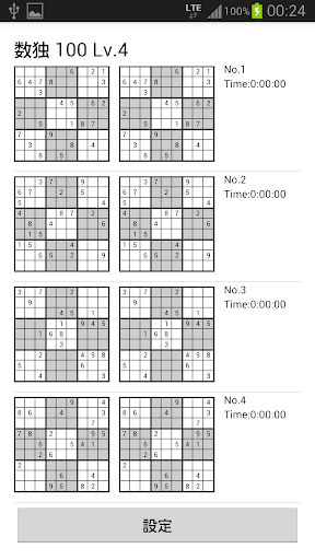 リストの要素は左側に問題、右側にセーブデータ、さらに右に問題番号プレイ時間が表示されています。