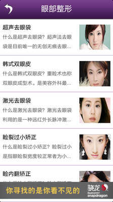 ◇涵盖瘦脸、隆鼻、切双眼皮、绣眉等300多项面部整容技术;