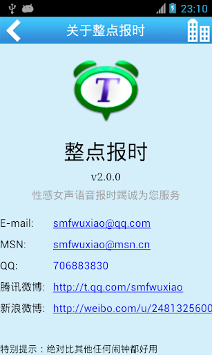 整點報時自去年(2012年4月)發布以來,到今天才更新,實在是抱歉。 1年半以來一直有很多用戶在使用這麼一個殘廢的軟件(語音不能下載,有時不報時),說明整點報時設計的真心不錯哦。整點報時2.0已經修復了很多問題,報時比舊版本更加準確,不會再出現不報時的問題了。新版本特地增加了鬧鐘的功能,我們的目標是代替系統鬧鐘和其他的鬧鐘程序。