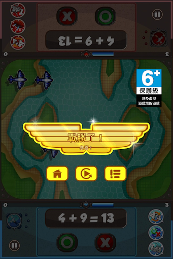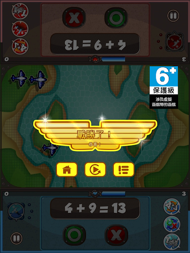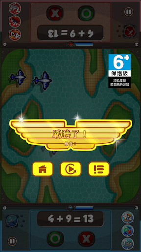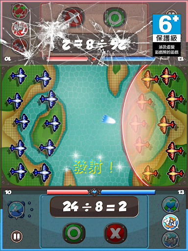 在這場算數戰役中,每位玩家都各自率領著一支軍隊。搶先你的對手,把螢幕上跳出的方程式標出對錯,帶領你的軍隊贏得勝利。切記,時間是不等待弱者的!盡快選出正確答案,取得摧毀敵方戰艦的機會。答案選錯你將會被封鎖幾秒鐘,無法作答。所以,保持冷靜,做出正確的回答。第一個消滅所有戰鬥機和敵軍基地的玩家就贏得這場戰役!