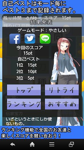 ※パスやヒントを使用すると連続正解は途切れるよ!