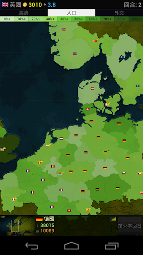 - Use the Economy and Population buttons to view each province’s Economy and Population values. Use the diplomacy button to view each province’s owner and engage in diplomacy (see Orders- Diplomacy View).