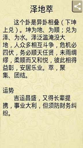 文王卜卦,六十四卦占卜,为您测算运势,升学,事业,财运,交易,经商,出行,恋爱,健康,子女等等.只要轻轻摇动手机,便可卜卦天下事.