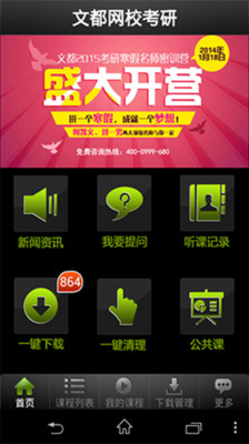 文都网校考研android客户端,是文都教育为考研用户精心打造的一款视频学习、最新考研资讯、远程在线答疑为一体的产品。