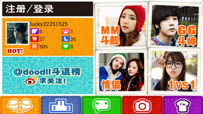 支持新浪微博与斗逗账号绑定,或可使用新浪微博账号注册成为逗迷,实时战绩一键分享到微博,呼朋唤友共参斗秀比拼。