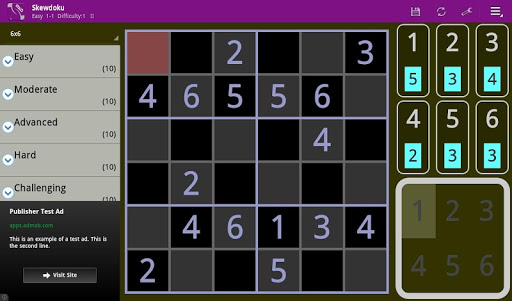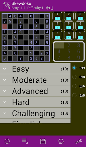 此應用程式中有5x5、6x6、8x8及9X9四種盤面尺寸。