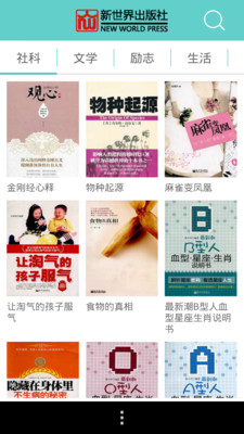 新世界图书精选,合集了新世界出版社132本最优秀畅销的经典读物,为亲爱的读者提供了传记、励志、教育、文学、心理、哲学、社科、经管9种书籍类别,如:《做人做事100招》、《沃伦•巴菲特全传》、《人生不可不知的100个心理法则》、《复制蒙牛--蒙牛企业迅速崛起的秘密》、《史玉柱创业思维》、《用人管人100招》及历史经典白话系列读物、《易经是个什么玩意》及经营人物系列、《泡沫之夏》系列、《让孩子受益一生的故事》系列、《我怀孕了》系列等。